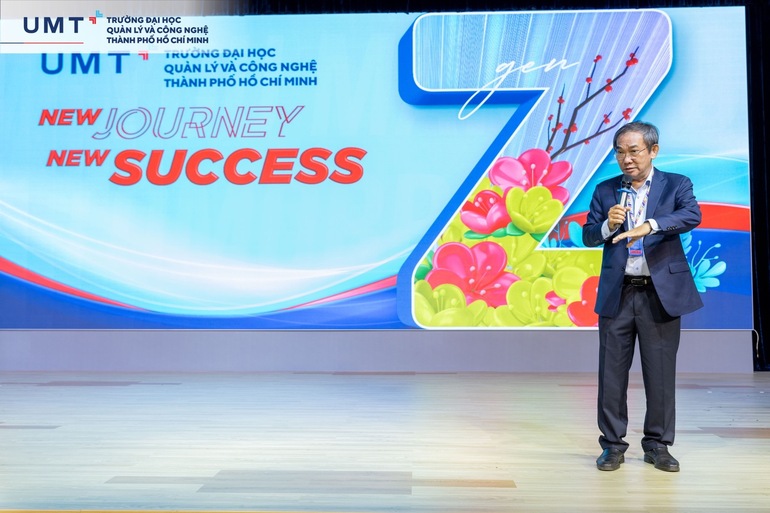 NGND. PGS. TS. Hồ Thanh Phong - Phó Hiệu trưởng Trường Đại học UMT phát biểu khai mạc tại Ngày hội "New Journey, New Success 2023".