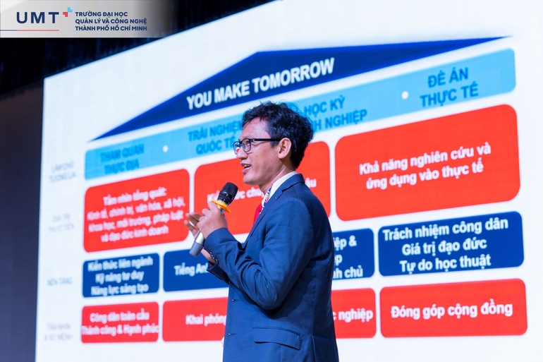 Hội thảo Kinh tế - Quản lý: "Gen Z bản lĩnh và vươn ra thế giới" - TS. Trần Nam Quốc, Trưởng khoa Kinh doanh Trường Đại học UMT và các Giảng viên Khoa Kinh doanh tư vấn chi tiết về từng ngành nghề cho các bạn học sinh THPT đang quan tâm về các ngành: Quản trị kinh doanh, Kinh doanh quốc tế, Marketing, Bất động sản, Truyền thông đa phương tiện.
