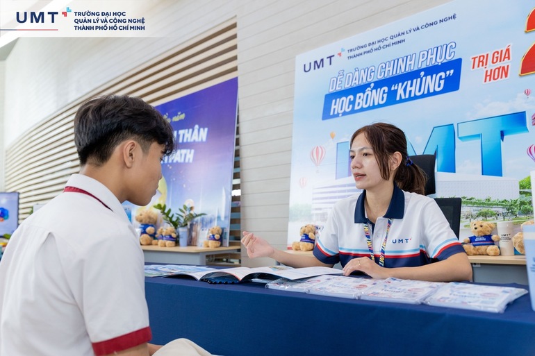 Bất ngờ hơn hết, các bạn sinh viên năm nhất UMT dù chỉ vừa trải qua một học kỳ nhưng đã xuất sắc hoàn thành vị trí “đại sứ UMT” trong Ngày hội để chào đón các bạn học sinh THPT đến tham quan và trải nghiệm Trường.