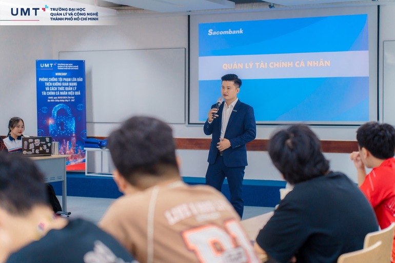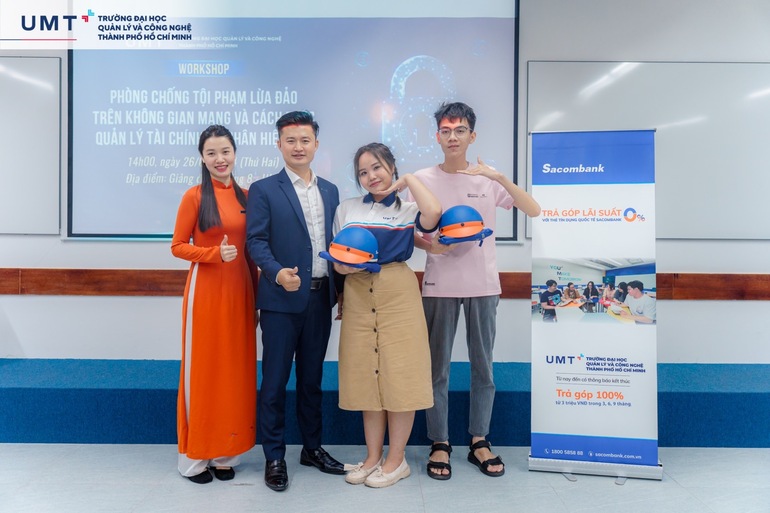 Các vụ lừa đảo trên mạng gần đây liên tục gia tăng, từ đánh cắp thông tin cá nhân, lừa đảo tình cảm, đầu tư tài chính với thủ đoạn vô cùng tinh vi. Nhằm tăng cường nhận thức, kiến thức về lừa đảo trực tuyến, bảo vệ sinh viên trước những rủi ro này, UMT đã phối hợp với Cán bộ Đội Cảnh sát điều tra tội phạm về kinh tế và chức vụ - Công an Quận 1 và Ngân hàng TMCP Sài Gòn Thương Tín Sacombank tổ chức Workshop “Phòng chống tội phạm lừa đảo trên không gian mạng và Cách thức quản lý tài chính cá nhân hiệu quả” vào ngày 26/2/2024.
