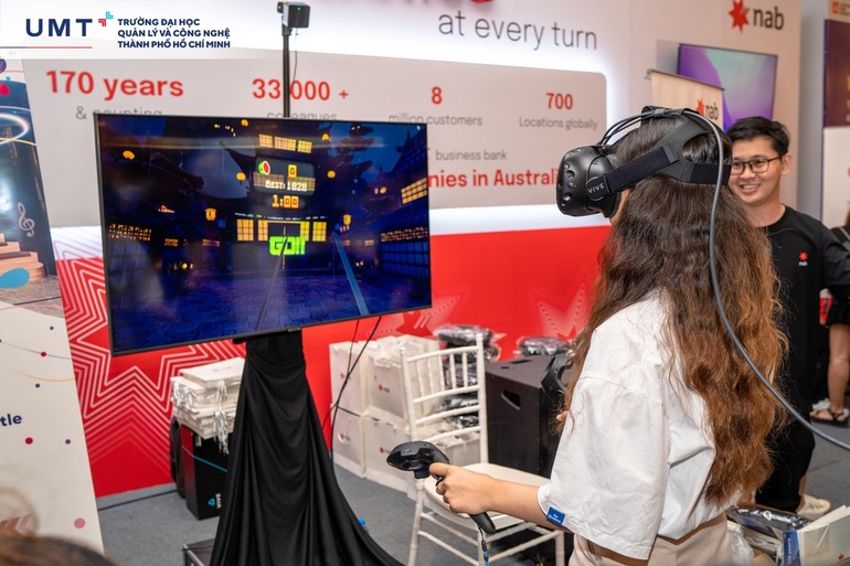 “Vừa học – Vừa chơi”, UMTers còn vô cùng hào hứng hơn nữa khi không chỉ được học hỏi mà lại còn được trải nghiệm các minigame để có quà mang về. Đó là những phần quà giá trị đến từ các công ty, tập đoàn tại các gian hàng như những khóa học lập trình miễn phí hay các món quà rất là cute “chữ e kéo dài”.