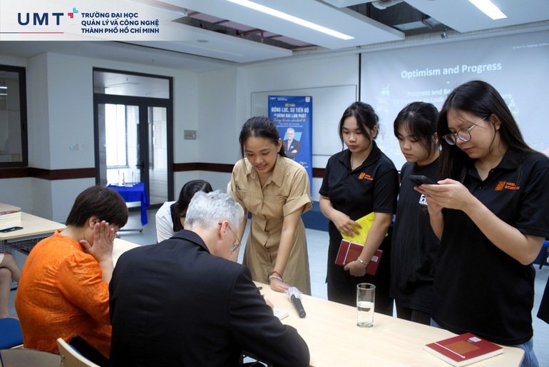 Đặc biệt, theo nghiên cứu của diễn giả, chỉ 10% trong số mọi người thỏa mãn với cuộc sống và thành tựu của họ. Vì vậy, ông muốn gửi gắm đến UMTers rằng để đạt được sự tiến bộ trong cuộc sống, hãy cứ lạc quan, tin tưởng vào khả năng của bản thân và đừng tự giới hạn mình. “Stay hungry, stay foolish”, diễn giả cũng trích dẫn câu nói nổi tiếng của cố CEO Steve Jobs, đồng sáng lập gã khổng lồ công nghệ Apple.