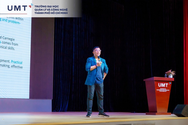 Sáng ngày 4/10/2023, chương trình UMT CEO Sharing thuộc Tuần sinh hoạt công dân năm học 2023 - 2024 được tổ chức với 2 chủ đề chia sẻ những kỹ năng, bí quyết để hướng tới thành công: