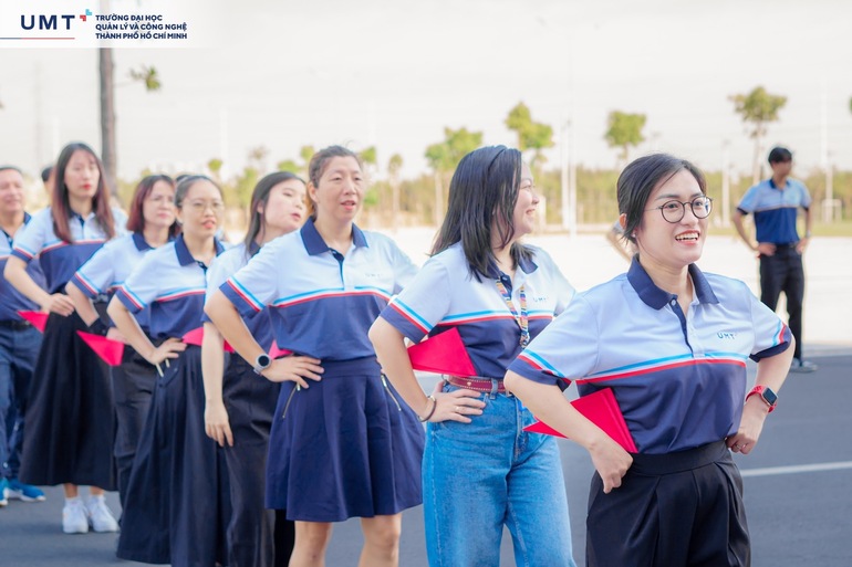 Đặc biệt, tập thể GVNV UMT đã đồng lòng tập luyện và trình diễn Flashmob ca khúc “Sẻ chia những khoảnh khắc” như một món quà tinh thần, gửi lời cảm ơn sâu sắc đến Ban Lãnh đạo và chào mừng UMT thêm tuổi mới. Bên cạnh đó, tiết mục Flashmob còn thể hiện sự cam kết gắn bó, sẻ chia và đồng hành cùng nhau của tập thể UMT.