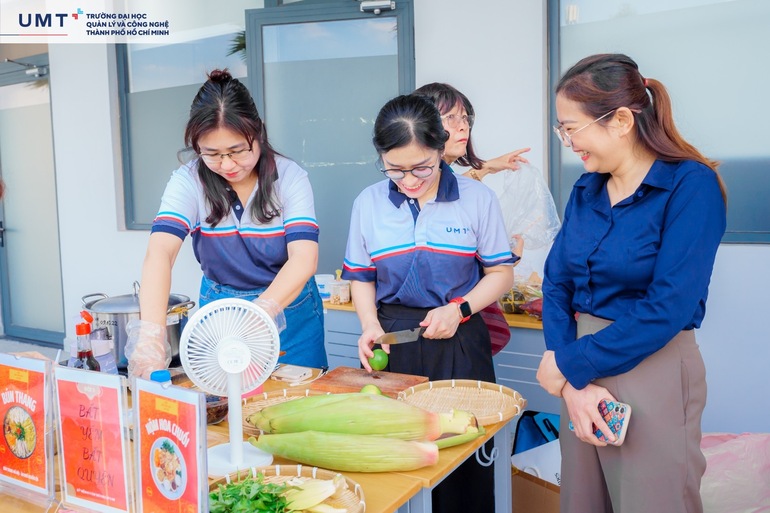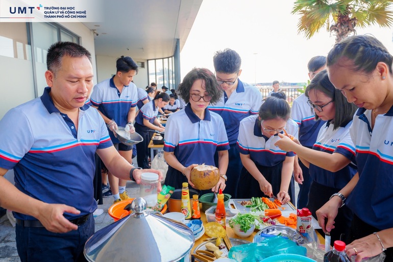 “UMTers Tài năng” không những đảm việc nước, thạo việc Trường mà còn rất khéo việc nhà. Tại Lễ Kỷ niệm 3 năm thành lập Trường tổ chức vào ngày 30/3/2024 vừa qua, Thầy cô UMT được chia thành 5 đội thi và trổ tài thi nấu ăn, cắm hoa.