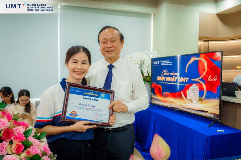 Tại Lễ Kỷ niệm 3 năm thành lập Trường, với sự tham gia của các vị Khách quý, Ban Lãnh đạo và tập thể GVNV, TS. Huỳnh Bá Lân - Chủ tịch Hội đồng Trường, Hiệu trưởng UMT, xúc động chia sẻ và gửi gắm: “Tôi đã dành trọn đam mê, tâm huyết để kiến tạo và phát triển UMT trở thành di sản cho các thế hệ. Tôi yêu UMT cả cuộc đời. Hy vọng các cộng sự, Ban Lãnh đạo, GVNV và các em SV cũng vậy”.