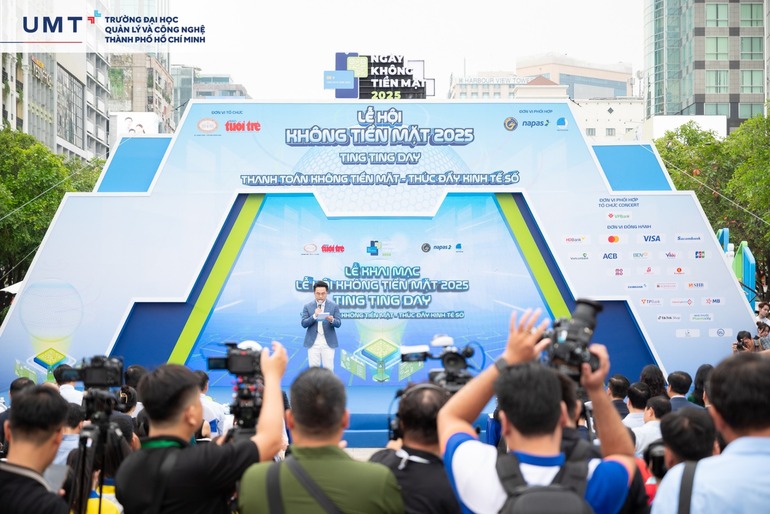 Tại đây, sinh viên UMT đã có cơ hội đặc biệt khi tham gia với vai trò cộng tác viên tại “Ngày Không Tiền Mặt 2025” – sự kiện thường niên quy mô lớn do Báo Tuổi Trẻ phối hợp cùng Napas và Vụ Thanh toán – Ngân hàng Nhà nước tổ chức tại Phố đi bộ Nguyễn Huệ, TP.HCM.