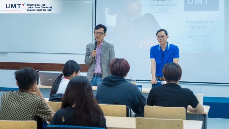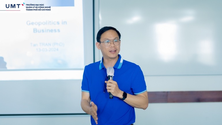 Ngày 13/3/2024, Trường Đại học UMT tổ chức Workshop “Địa chính trị trong kinh doanh” với sự tham gia của chuyên gia, TS. Trần Thái Tân – Phó Giáo sư Nghiên cứu về Khởi nghiệp và Marketing Kỹ thuật số, hiện giảng dạy Địa chính trị tại Trường Kinh doanh ICD (Pháp), đồng thời là Founder của Công ty Polaris. Workshop mang đến cho UMTers kinh nghiệm thực tế để nâng cao kiến thức, kỹ năng nhằm thích ứng với sự thay đổi của thế giới kinh doanh đầy biến động.