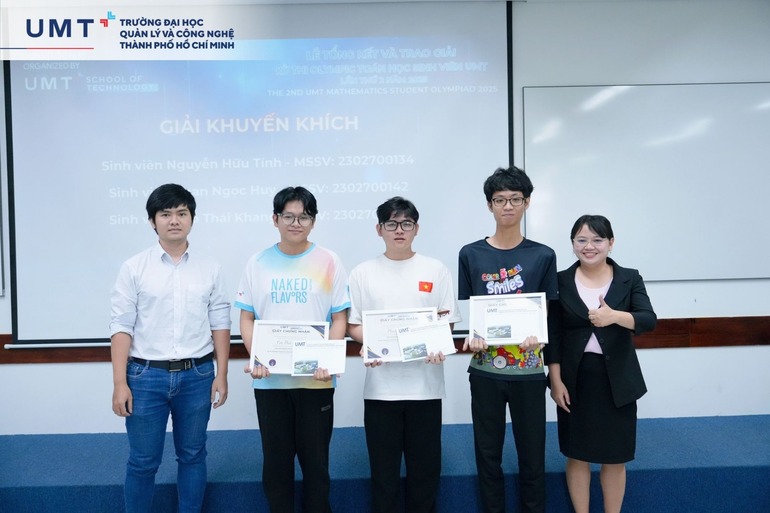Chia sẻ tại buổi lễ, bạn Sơn Tân – Phó Ban tổ chức cuộc thi, cho biết: “Mình thực sự tự hào khi chứng kiến tinh thần chinh phục tri thức của các bạn thí sinh. Không chỉ tư duy nhanh nhạy, các bạn còn mang đến một bầu không khí thi đấu sôi động và đầy nhiệt huyết. Xin gửi lời cảm ơn đến Khoa Công nghệ UMT và đội ngũ tình nguyện viên đã góp phần tạo nên một kỳ thi trọn vẹn và ý nghĩa”.