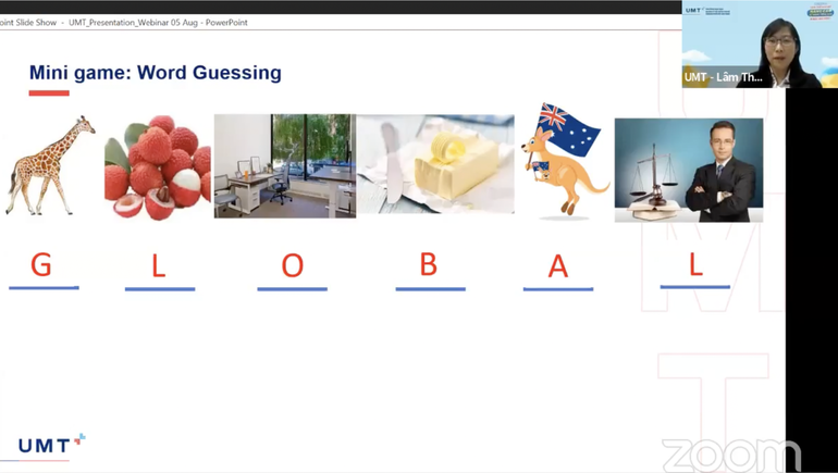 Cuối chương trình, để tạo nên không khí sôi nổi cho Webinar, ThS. Lâm Thùy Trang đã cho các bạn chơi mini game nhận quà để rèn luyện Tiếng Anh và “bật mí” một số công cụ học Tiếng Anh hiệu quả tại nhà vô cùng thú vị.